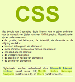 De structuur van een webpagina regel je dus doormiddel van html5, maar de opmaak van een webpagina leg je vast in CSS. Hierdoor weet je zeker dat op elk platform en elke browser de website op de zelfde manier weergegeven wordt. Een voorbeeld van wat er met css mogelijk is zie je hier:
